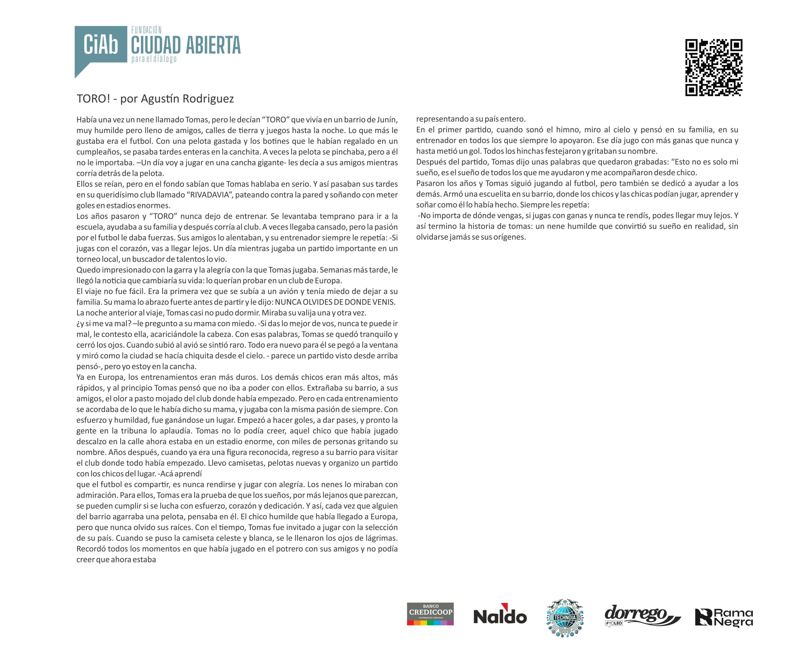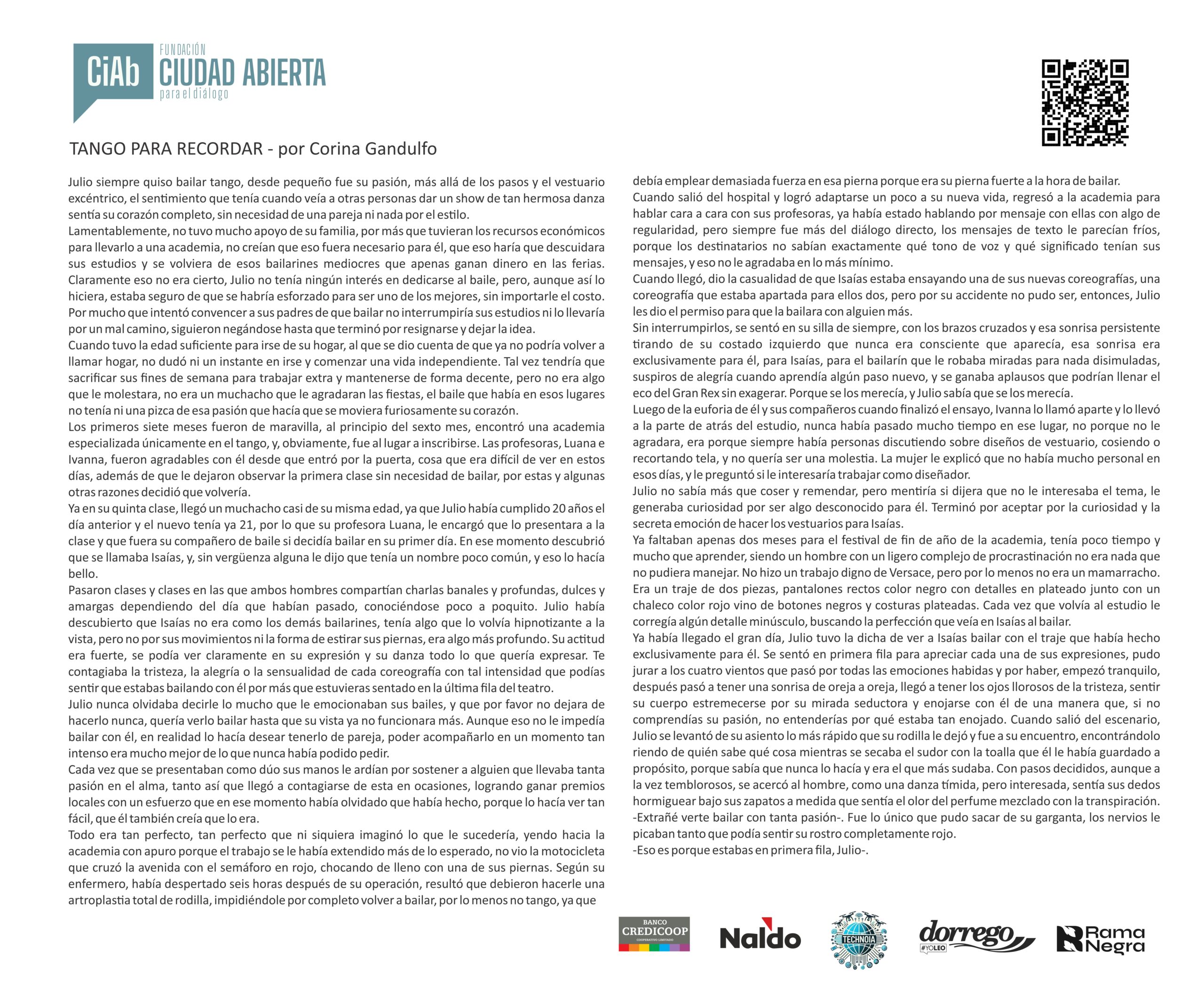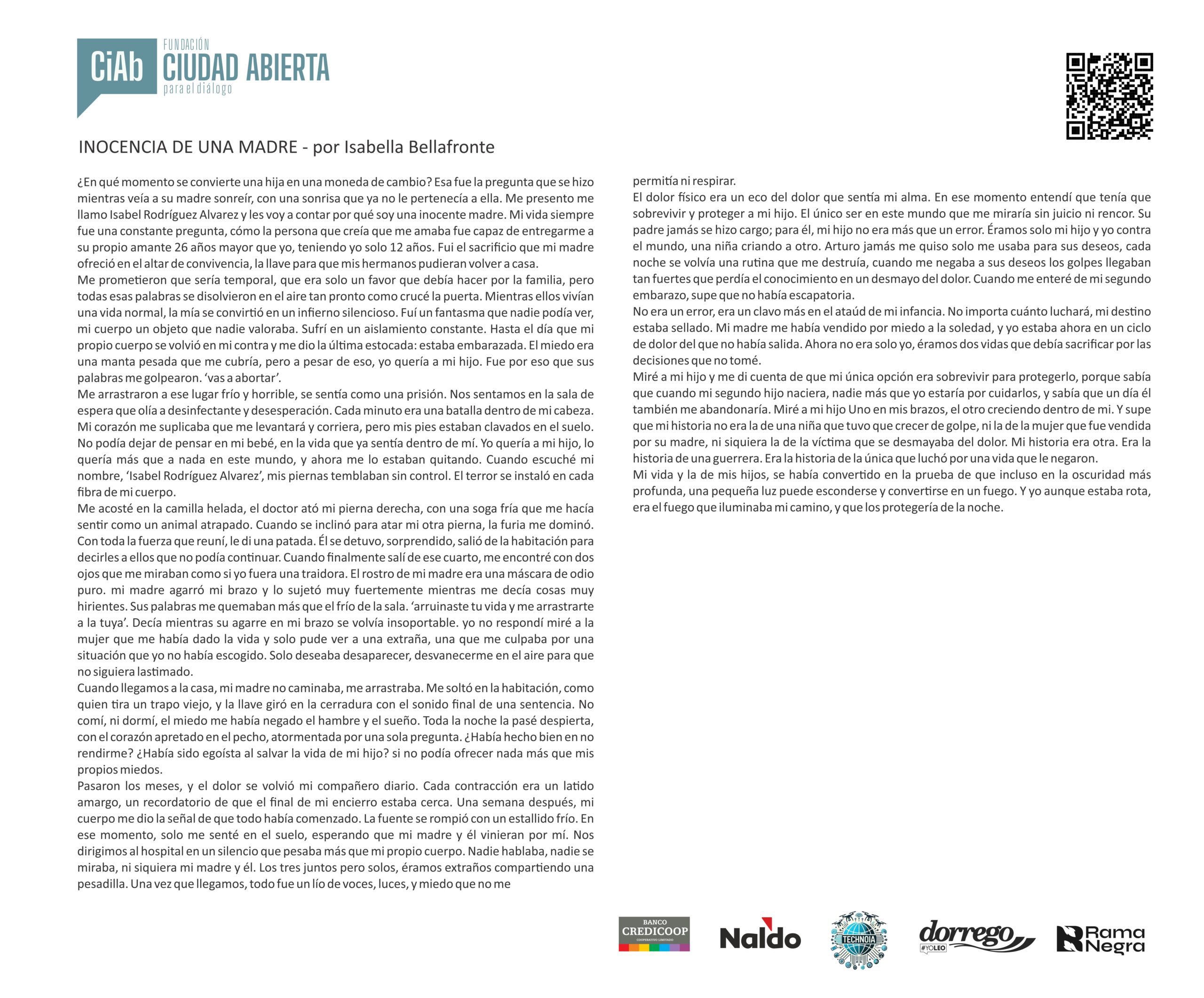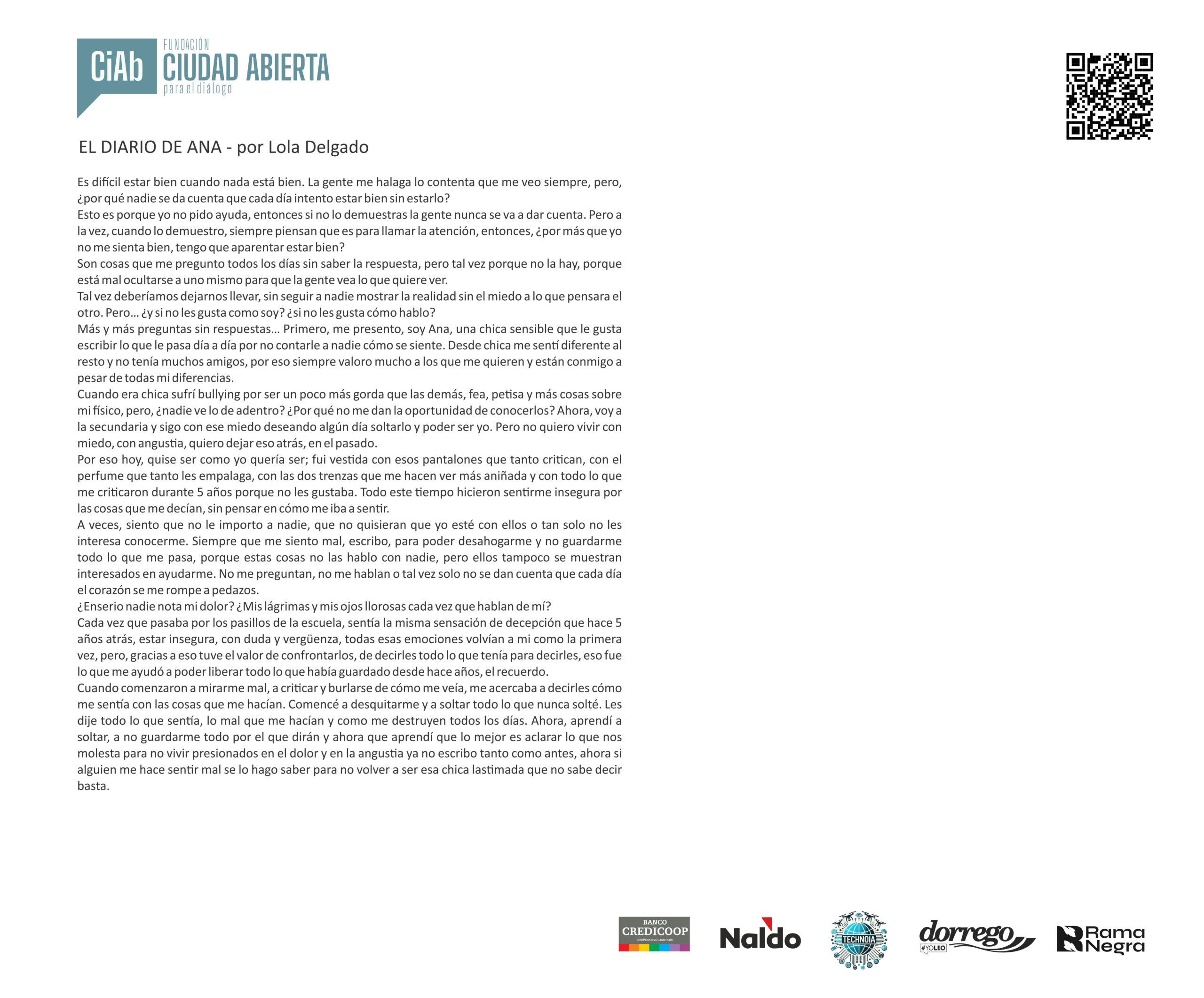 Mensaje del jurado Juan José Becerra: “Para mí fue un verdadero honor participar como jurado del concurso de la Fundación Ciudad Abierta. Puede sonar como una formalidad, como algo que uno dice porque queda bien, pero en este caso no es así: realmente lo siento. Y lo siento incluso más profundamente que en otras ocasiones en las que integré jurados, porque nunca antes me había tocado leer textos escritos por chicos tan jóvenes.