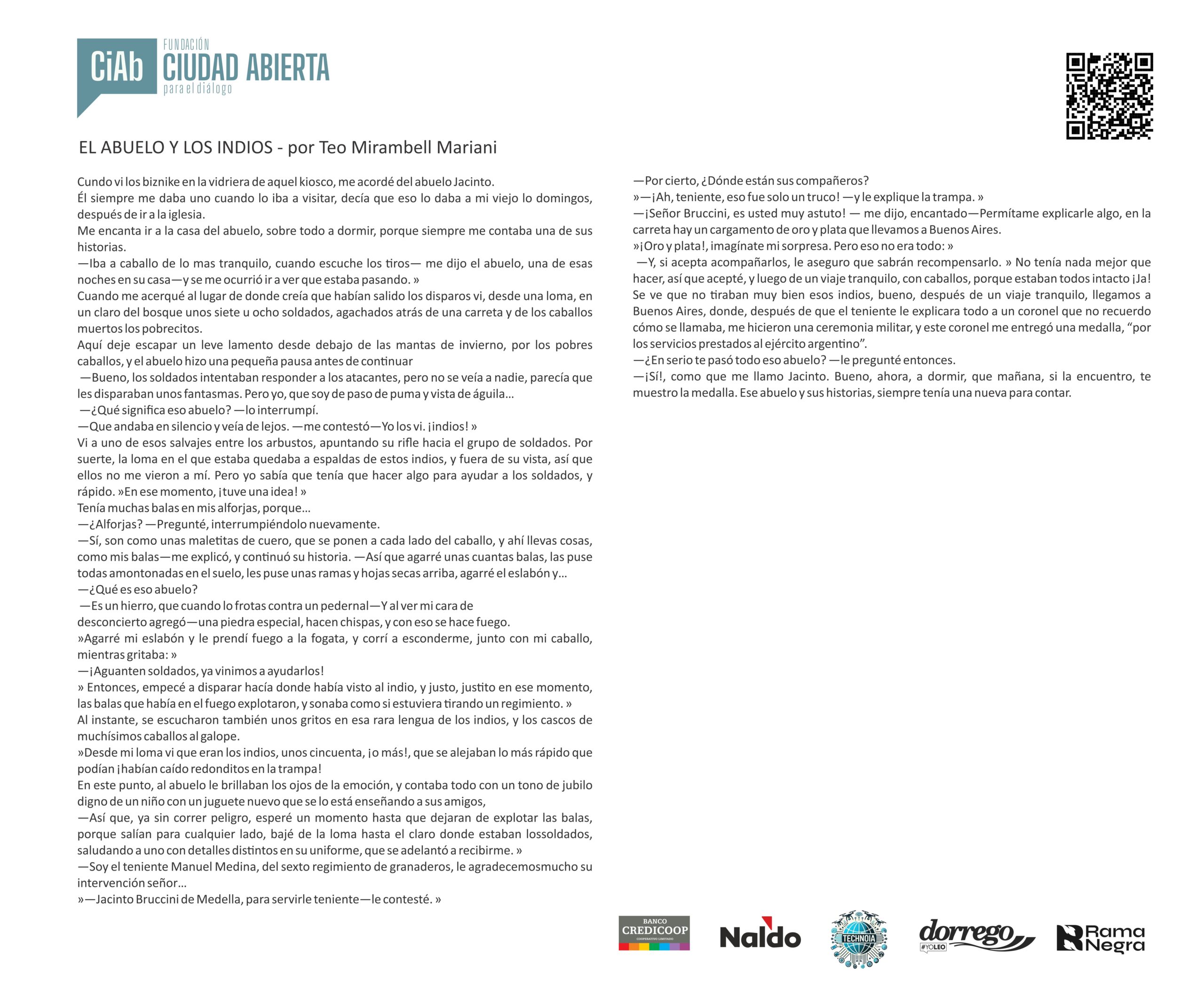 Mensaje del jurado Juan José Becerra: “Para mí fue un verdadero honor participar como jurado del concurso de la Fundación Ciudad Abierta. Puede sonar como una formalidad, como algo que uno dice porque queda bien, pero en este caso no es así: realmente lo siento. Y lo siento incluso más profundamente que en otras ocasiones en las que integré jurados, porque nunca antes me había tocado leer textos escritos por chicos tan jóvenes.